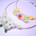 カパッと広げて使うワイヤーネックレスです。 白の方は、花を細いワイヤーぐるぐるに固定してあります。 位置は動かせませんが、花の向きは多少変えられます。 色入りは、固定されていないので簡単に位置移動します。 ワイヤーが回ってしまうことがあるので、お気を付けください。 ●共通サイズ● ワイヤーネックレスパーツ:直径13cm ●各サイズ● 白:花大直径28mm 長さ15mm パール6mm 花中直径18mm 長さ18mm ドロップビーズ長さ8mm 花小直径10mm 長さ5mm パール3mm 色入り:花直径28mm 長さ20mm ビーズ長さ17mm×径10mm 同じには作れませんので、各1点限りとなります。 気になる方はお早目の御購入を検討願います。