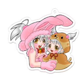 アクリルキーホルダー - 70 x 70 (mm)ボンバーマンの状態異常のウサギとハムスター姿のシロシロン姉妹のアクキーです。 この商品はpixivFACTORYで作られた商品です。サンプル画像は完成イメージのため、実物と異なる場合があります。
