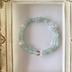 アクアマリンタンブルと水晶の水の加護ブレスレットです アクアマリンは ・すべての生命の源である「海」と深いかかわりを持っており 幸福・富・生命・若さを象徴し、怒りや葛藤などの悪感情を 洗い流してくれるでしょう ・コミュニケーションの石といわれ、身につけると 表現力が高まり、他人や自分に対して 素直になり優しい言葉をかけられるようになると 言われています ・肉体面では免疫力を高め体の不調を整え精神面と 体調面でのサポートをしてくれるとされています。 水晶は 生命力を活性化させ、潜在能力を引き出し、直感力、創造力を育んだり、魔除けにしたり霊格を高めてくれることから石の中でもオールマイティな力を持っていると言われています アクアマリンと組み合わせることでその力を増幅・調和 させてあります アクアマリン 粒サイズ6〜7mm 水晶 粒サイズ4〜8mm 内径16cm (モデル手首サイズ約14㎝) ※販売はブレスレットのみです ※遠隔浄化・エネルギー補充のアフターケア付き (ブレスレット・ストラップ等天然石のゴム交換は千円 石の破損・紛失は二千円~とさせていただきますが 手に入らない場合ほかの石で代替させていただくことになります) ※発送は簡易包装・定形外郵便等にて発送です