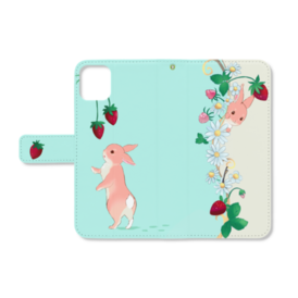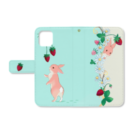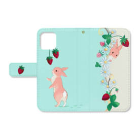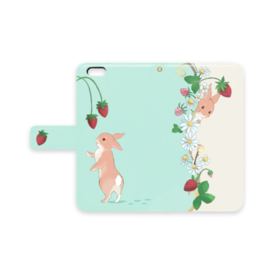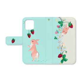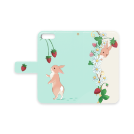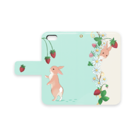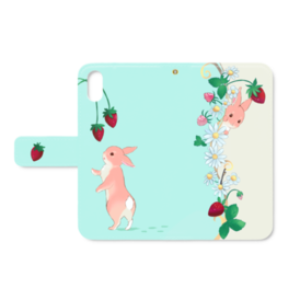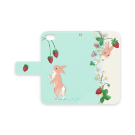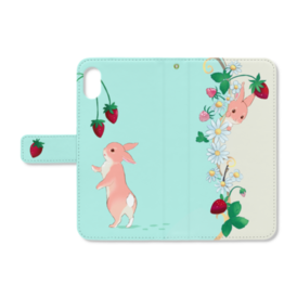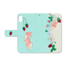 iPhoneケース(うさぎ・いちご・ミントグリーン)