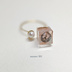 square ring 小さな正方形の中に天然石と紋を閉じ込めました。 各イメージのお色味の天然石を使用しています。 全体のバランスを考えてパールを隣にしました。 淡水パールではありませんが、艶のあるものを選びスクエアとのデザインバランスを取りました。 〇三日月宗近…カヤナイト 〇鶴丸国永…ローズクォーツ 〇松井江…ペリドット、カヤナイト 〇山姥切長義…ブルーレース 〇豊前江…ペリドット、赤メノウ ※ほかにも種類を増やす予定です。 【 サイズ 】 約12号 ※商品の性質上強い衝撃を与えると破損する恐れがあります。 ※正方形の為角があります。角を丸めてはいませんのでお気をつけてお使いください。 ※多少の気泡が入っている場合がありますのでご了承願います。 【 ご注意 】 ●金属でできていますので、アレルギー体質の方はご遠慮ください。 ●レジンを使用しております。アレルギー体質の方はご遠慮ください。 ●色味は写真とは多少異なる場合がありますので、ご了承願います。 ●とても繊細にできております。お取り扱いには十分ご注意ください。 ●素人のハンドメイド品ですので御理解の上ご注文をお願い致します。 ●初期不良の場合は到着から1週間以内にご連絡ください。返品対応いたします。そのほかの理由の返品についてはお問合せください。 ●再販がある場合、販売時期によっては同じ素材でない場合やデザインの変更もございます。 その都度告知させていただきますので、ご了承願います。 価格も一定とさせていただきたいのですが、都合により変動することもあります。こちらもご了承願います。 ●発送は「安心BOOTHパック」になります。金額には含まれていませんのでお気を付けください。
