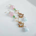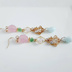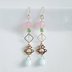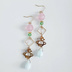 土星チャームが可愛い☆スクエアとチェコビーズとガラスビーズのゆらゆらロングピアス/イヤリング(ピンクグリーン)/Trendy pink pale green long earrings with saturn charm