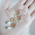 ストーンがきらりと光る可愛い土星チャームと小さめのガラスビーズが揺れるスクエアフープをメインにミントミルク色のぷっくり可愛いしずくビーズやオパールピンク色のファイアポリッシュチェコビーズなどを合わせたお洒落な揺れるタイプの作品となっております☺ メインのお色はピンク色のお花をイメージしたピンクとグリーン色、ゴールド金具と合わせてオールシーズンご利用頂ける可愛い色合いでまとめました☆ サイズはピアス金具を合わせて約7cmとかなり長めのサイズとなっており、揺れ感&存在感たっぷりの作品に仕上げました☺ アレルギー対応のピアスやイヤリングへの変更につきましてはご注文時にオプションよりご希望金具をお選び下さい ※こんな方におすすめ♪ *大切な方へのプレゼントに *長めサイズの作品がお好きな方に *ピンクとグリーン色の組み合わせがお好きな方に *揺れるデザインの作品がお好きな方に ☆しずく型チェコビーズ ミントミルク 9x6mm ☆ファイアポリッシュチェコビーズ オパールピンク 8mm ☆ガラスビーズ グリーン ボタンカット 4mm ☆ガラスビーズ ピンク ボタンカット 4mm ☆土星チャーム ゴールド ☆スクエアフープ ゴールド ☆スペンサー ゴールド ☆9ピン ☆三角カン ☆丸カン ☆ピアス用金具(フック式☆ゴールド) 長さは約7cmとなっております。(1cm程のピアス金具を含む)