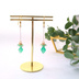 ※デザイン性を重視のため、金具をシンプルな物にしております。 詳しくは最後の画像をご覧下さい。 エメラルドスプラッシュのような形をした、グリーンオニキスの天然石イヤリング・ピアスです。 カットがとても綺麗な宝石質の天然石で、光を受けてキラキラ輝きます。 0,3㎜のワイヤーでユラユラ揺れ、可愛さもアップ。 サイズも控え目で使いやすいデザインです。 ★サイズ 全長約5cm グリーンオニキスダイヤファセットカット 11×7㎜ グリーンオニキスボタンカット 2㎜ ★素材 真鍮 天然石 イヤリング→ノンホール樹脂 ピアス→サージカルステンレス ・一つ一つ丁寧に制作しておりますが、ハンドメイドのため若干の歪みや傷が生じる場合がございます。 ・天然石は自然の物ですので、一つ一つカットやお色味が異なります。 ・アレルギー対応の金具ですが、アレルギーが出ない保証はできません。アレルギーをお持ちの方はご注意下さい。 ・お使いのディスプレイ等により実物よりお色味のズレが生じる場合がございます。