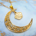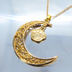 マットゴールド 透かし三日月と肉球の大人可愛いネックレス ムーンネックレス 猫 犬