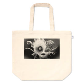 トートバッグ - M - プリント面積中植物の国で長年過ごした人間の姿です。 長い時を過ごした結果、肉や骨はすっかり緑と同化し、別の生命へと変わりつつあります。 でも恐れることはありません。 彼は自らの意思でこの国をおとずれ、望んでこの姿になったのですから。 サンプル画像は完成イメージのため、実物と異なる場合があります。