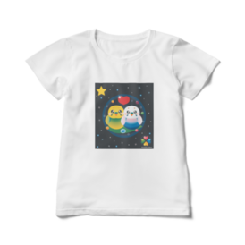 セキセイインコ夜空(ピンク)レディースTシャツ