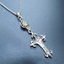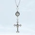 アンティークシルバー ゴシック調のロザリオ(十字架)とラインストーンのペンダント・ネックレス アジャスター可 SV925可