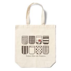 「たくさんのポケットに、自分だけのお気に入りをつめ込んで出かけよう。」 シンプルで使い勝手の良いエコバッグです。A4サイズが収納でき、マチもある大容量です。生地は薄手でかさばらず持ち運べます。 バッジやキーホルダーなどで、自分らしく飾り付けるのもおすすめ。 同柄のサコッシュ( https://wadaharamay.booth.pm/items/4305200 )も併せてご覧ください。 この商品はpixivFACTORYで作られた商品です。サンプル画像は完成イメージのため、実物と異なる場合があります。