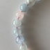 キャンディみたいなパステルカラーの ミックスベリルのブレスレットです 全体的な意味として、このような方にお勧め! 〇必要のないことまで心配してしまう 〇マイナス思考からの脱却 〇トラウマを癒したい 〇偏見を捨てて素直になりたい ヒーリング効果としては 〇視力の改善 〇肝臓の不調 〇毒素の排除に用いられるそうです それぞれの意味は・・・ モルガナイト:愛の波動に満ち、ストレスから守ってくれる 恋愛が長続きしない人 依存心が強めでひとりで行動できない人 魂を成長させたいときに ヘリオドール:肉体的な疲れを取り除き、 健康の促進に効果があると言われています 人生を切り開く力があり 気持ちを前向きにしたり、 心にゆとりをもたらしてくれることで、 恋愛運や家庭運を上昇させることにも 繋がるとされています ゴシェナイト:宇宙と繋がり高次の階層をあがっていきたい人 縁起の良いつながりを得たい人 疲れ切った頭脳にリラクゼーションを与え 必要な休養がしっかりと取れるよう 促してくれます グリーンベリル:独自の個性を伸ばす 運命を変える 未来を透視し、明るい希望を得る 負の影響から守ってくれる アクアマリン:心身ともに疲労しているときに コミュニケーション能力を高める 幸福な恋愛や結婚をもたらす 心の傷やトラウマを根底から癒したい 基本ミルキーですが透明度がある部分も結構あります 全体的に色が薄めの為お求めやすくなっております 粒サイズ約6.5mm~7mm 内径15.5cm (モデル手首サイズ約14㎝) ※販売はブレスレットのみです ※発送は簡易包装クリックポストで発送です🍀 ※クリックポスト・定形外郵便の発送を ゆうパックに変更することも出来ますが その場合1000円をブーストしていただき メッセージでお知らせください ※クリックポスト・定形外郵便で発送した荷物が 配達途中で紛失したり、破損や汚損などのトラブルが起きたりした場合であっても、損害賠償は出来かねますので ご了承ください