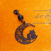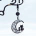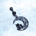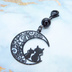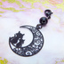 マスクチャーム アラベスク調の透かし模様の入った三日月と親子猫の可愛いモチーフとオニキスを組み合わせたブラックチャーム