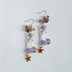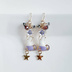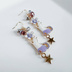 お星様が揺れる☆お花とおててを上げた猫ちゃんが可愛いプチジャラジャラピアス/イヤリング(パープル)/Cute Purple White Kitten Earrings