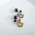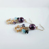 土星チャームとステラパールの大人パープル色ピアス/イヤリング/Purple Blue Dangle Earrings With Saturn Charm