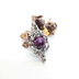 作品シリーズ:thirdeye 用途:ペンダント等 素材: sus316L(サージカルステンレス) 天然石:パープライト 天然石色:赤紫 産地:ナミビア 天然石サイズ ±9㎜ (商品により多少の誤差がございます) 用途:ペンダントトップ・お守り等 ●作品の制作に関して 天然石の大きさに合わせ、円形のサージカルステンレス(マルカン)を1つ1つ何十個も手作業で複雑に編み上げていくチェインメイルと呼ばれる技法を使い制作されたアクセサリーです。 ●天然石に関して 色鮮やかな赤紫の色合いと天然の模様が美しい、パープライトを使ったペンダントトップ。 パープライトはトリフィライト、リシオフィライトなどの科学的に不安定な鉱物が酸化する事で生まれた天然石で、鮮やかな紫色はマンガンによるものです。 パープライトは赤紫を示すラテン語から名付けられたと言われています。紫は古代世界において高貴な色とされ、特権階級の人のみが身に着ける事を許されました。パープライトも貴族などの高い身分の人々が用いていたそうです。 ストーンワード ・頭の中を整理し合理的に行動するよう促す ・自分に自信を持つ ・精神的な癒し ・ストレスの軽減 ・困難に立ち向かえるようサポート ・自身の意見をはっきりと伝える ※天然石説明にて使用しております説明等は古来よりの言い伝え等に基づき記載させていただいております。 効果等と保証するものではございません。 ※※天然石は自然から出来たもので、人工物ではないため、こまかなカケや凹み歪な部分やクラック等がある場合がございます。