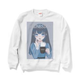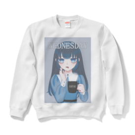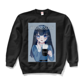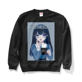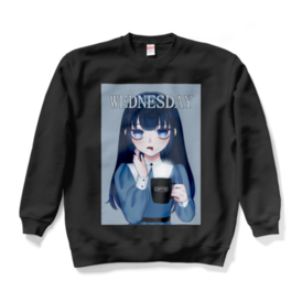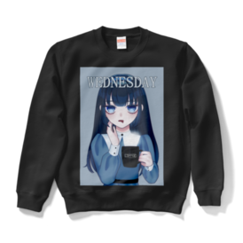 スウェット - XL - ブラックどんより水曜日を過ごす女の子のスウェットです! 水曜に着たり雨の日に着たり、なんかが半分終わる日に着たり… ウェンズデーちゃんと一緒に水曜を乗り越えよう!! この商品はpixivFACTORYで作られた商品です。サンプル画像は完成イメージのため、実物と異なる場合があります。 この商品はpixivFACTORYで作られた商品です。サンプル画像は完成イメージのため、実物と異なる場合があります。