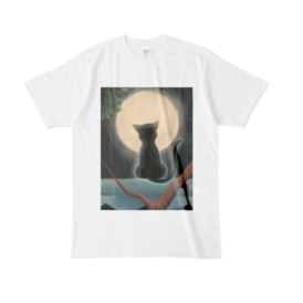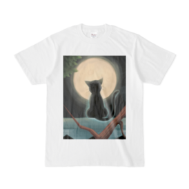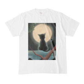 Tシャツ - XL - 白この商品はpixivFACTORYで作られた商品です。サンプル画像は完成イメージのため、実物と異なる場合があります。 お月見をする黒猫のTシャツです。