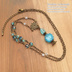 鮮やかな水色の小瓶モチーフをトップにしたネックレスです。 水の中に咲く美しいな花から作った香水の瓶 というイメージで作りました。 小瓶のメインに使用した花のビーズはすりガラス風のフロスト加工。 蓋部分には葉っぱの形のビーズを使用しました。 チェーンもブルー中心のカラーでまとめて、 みずみずしい雰囲気に仕上げました。 コネクターも花のような透かしパーツを合わせました。 ※小瓶のモチーフはパーツを組み合わせて 瓶の形を作っているものですので 実際に瓶としてお使いいただくことはできません。 ☆ ☆ ☆ 【サイズ】 チェーン:約60cm+アジャスター約5cm トップ全長(コネクターから下):約5.5cm 小瓶モチーフ:約3.9cm 【カラー】 金具:アンティークゴールド