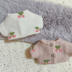 10cmぬいサイズのトップスです。 ボタンを後ろにすればニットトップス、ボタンを前にすればカーディガンになります。 色は白とくすみピンクの二色です。 ※柄の出方が写真と異なる場合がございます。ご了承ください。 ✱✱✱ 丁寧に製作してはおりますが、家庭用設備・材料のみを使用した、素人のハンドメイド品であることをご理解いただける方のみご注文ください。 一部布用接着剤・熱や濡れに弱い素材を使用している場合がありますので、基本的に洗濯はできません。 また、配送中の低温でチャコペンの印が浮き出てしまう場合がございます。温めれば消えますので、15cm以上離れたところからドライヤーの温風を当てるなどしてください。ドライヤーを近付けすぎたり、ぬいぐるみに着せたまま温風を当てることはおやめください。 また、作品に直接アルコールをかけての消毒などもお控えください。 スナップボタンが薄く割れやすくなっております。 着せ替えの際はご注意ください。 製作・材料の保管は、猫のいる家で行っております。 毛の付着などないよう注意してはおりますが、ひどいアレルギーがあるなどご不安な方はご購入をお控えください。 ノークレーム・ノーリターンでお願いいたします。 製作者責任の初期不良(購入品と違うものが送られてきた、梱包は綺麗なのに中身が壊れていたなど)の場合を除き、返品交換は受け付けておりません。