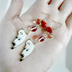 なんとぶらぶらさせられている可愛い白猫ちゃんチャームをメインに2色のしずく型チェコビーズ、見る角度によって色合いが異なって見える幻想的なルナフラッシュを合わせた可愛いピアスになっております☆ メインのお色はもちろん白猫のホワイト色、それぞれ色味が異なる赤とスモーキーなピンク系のしずくビーズを合わせて可愛さの中に大人っぽさを加えたお洒落な色合いにまとめました☆ ルナフラッシュは特殊加工された半球を繋ぎ合わせた人工石になっております。 見る角度や光の当たり具合によって赤や透明色など、まるでオーロラの様に色々な顔を魅せてくれます。ご着用されている方も見ている方も両方ともお楽しみ頂ける作品になっております☺ 猫ちゃんがお好きな方にはもちろん、ユニークなデザインがお好きな方やしずくビーズがお好きな方におすすめの作品となっております♪ アレルギー対応のピアスやイヤリングへの変更についてはご注文時にオプションよりご希望金具をお選び下さい ※こんな方におすすめ♪ *大切な方へのプレゼントに *揺れるピアスがお好きな方に *ネコちゃん(白猫)がお好きな方に *プチプラ価格でファッションコーデをまとめたい方に ☆しずく型チェコビーズ トパーズラスター 9x6mm ☆しずく型チェコビーズ ブリック・オペーク 9x6mm ☆ぶらぶらネコチャーム 白猫 約2.5cm ☆ルナフラッシュ シャム ラウンド型 8mm玉 ☆丸カン ☆9ピン ☆ピアス用金具(フック式☆ゴールド) ※少しだけ重たい作品となる為、キャッチを付けさせて頂きます。 長さは約6.5cmとなっております。(1cm程のピアス金具を含む) Pretty trendy and unique design dangling earrings made with cute white kitten charm, luna flash and teardrop czech glass beads. The main color of this earrings are red and white which makes your ears looks even more pretty! The length of this earrings are approx 6.5cm (including earrings finishes)