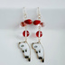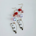 しずくビーズとぶらぶらネコちゃんの可愛いピアス/イヤリング(白猫×赤色)/Cute White Kitten Charm and Red Colored Earrings / Clip on Earrings