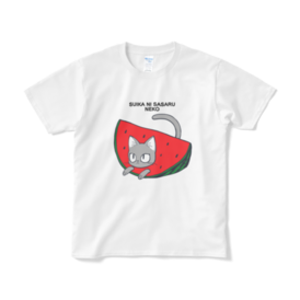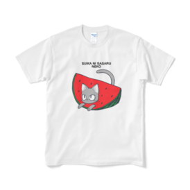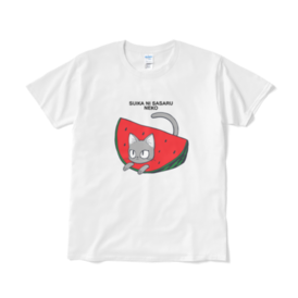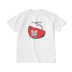 Tシャツ(短納期) - XL - ホワイトスイカにささってしまった猫のTシャツです