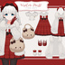 PNG30枚以上(赤色のみ) * ワンピース×2(カーディガン付き、カーディガンなし) * 靴×2(靴下あり・なし) * カーディガン分割 * ベレー帽×1 * リボン×1 * ピアス x 1 * 手 x 2 * 黒タイツ×1 * バッグ x 1 *手と脚のPSD(色調整用)