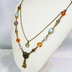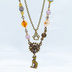 バステト 猫の神様 オリエンタル風 アンティークゴールド ダブルチェーン ビーズを組合わせたアシンメトリーネックレス
