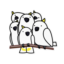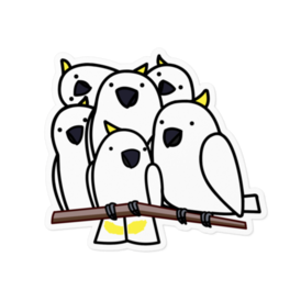 キバタン軍団に囲まれてしまったコバタンさんステッカー