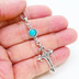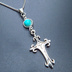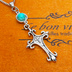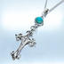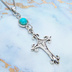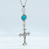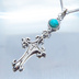 アンティークシルバー ゴシックデザインロザリオ(十字架)とターコイスのネックレス 長さ変更可 アジャスター可