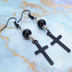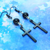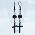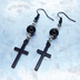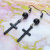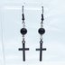 黒いロザリオ(十字架・クロス)とオニキスを組合せたブラックピアス アクセサリー メンズ レディース