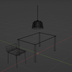シンプルな家具の3点セット(椅子・テーブル・照明器具)です。