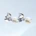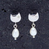 シルバー925 猫フェイスと淡水パールのかわいいスタッドピアス スワロフスキー 淡水パール ポストピアス