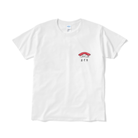 Tシャツ(短納期) - XL - ホワイトゆるイラストのすしもどきTシャツです。 デザイン:まぐろ 【注意事項】 --------------------------------------------------------------------- ※この商品はpixivFACTORYで作られた商品です。サンプル画像は完成イメージのため、実物と異なる場合があります。