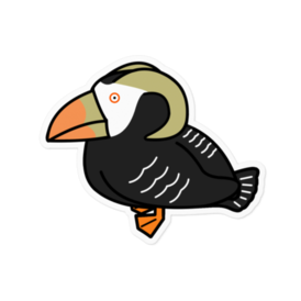 ステッカー - 160 x 160 (mm)この商品はpixivFACTORYで作られた商品です。サンプル画像は完成イメージのため、実物と異なる場合があります。 作品No.74 くちばしの美しいエトピリカさん 【あらすじ】 飾り羽とくちばしがキレイなエトピリカさん。 北海道などに生息するレアな水鳥です。 アイヌ語で「くちばしの美しい」鳥という意味で、決してお米の名前ではありません。 ヴァイオリンの曲に「エトピリカ」がありますが・・・ おそらく誰しもが聞いたことがあるはずですが、その時はエトピリカさんを思い出してください。 【コメント】 情熱のある大陸ではないほう・・・です(笑)