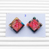 同種のパーツから作り出したピアスですが、 柄の出方がそれぞれ違うので、選択できるようにしました。 早い者勝ちです。 割と大きめなので、存在感は凄いです。 レジンパーツには赤色系の千代紙を封入。 キャッチはシリコンタイプを使用。 すでにレジンパーツに金具を接着してあるので、 イヤリング交換はできません。御了承下さい。 ●大きさ● ピアス足:12mm モチーフ全体厚:3mm(マーブル2mm レジン四角枠1mm) モチーフ大きさ:マーブル・一辺13mm レジン四角枠・一辺10mm 三角枠・一辺9mm 全く同じにはできませんので、各1点限りとなります。 気になる方はお早目の御購入を検討願います。 作品保護のため、折り紙で箱を用意しました。 補強は入れてありますが、輸送時の箱の多少の損傷は御容赦願います。