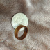檜を曲げて作った指輪です。ほのかにいい香りがする。 ウォールナットオイルを染み込ませ、蜜蝋で仕上げています。 完全な円形でない、厚みが均一でないを注意。 蜜蝋の被膜が自然に磨り減ります。 水やアルコール消毒がかかった場合は、なるべく早く拭き取ってください。 [サイズ size] 内径 diameter:17.5mm (日本 約14号 / US size:~7.5) 高さ height:6mm This ring is made by bending Japanese cypress.It has a faintly nice aroma. It is soaked in walnut oil and finished with beeswax. Note that it is not a perfect circle, and the thickness is not uniform. It is coated with beeswax but will naturally wear off. If exposed to water or alcohol disinfection, wipe off as soon as possible.