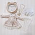 BABY KUMAKO size ワンピース くま耳ベレー帽とくま柄ワンピースのセットです❁⃘*.゚ BABY KUMAKOサイズなので、他ドールとの 互換性は保証出来ませんのでご注意下さい。 *セット内容* ワンピース、ベレー帽、ドロワーズ、靴下、くまちゃんポシェットの5点 (その他の小物は付きません) model:BABY KUMAKO (RURU) メイク/@ohse_haru 様カスタム (#黒糖っ子) *着用方法 後ろはメカニカルファスナーで留める仕様です。 フルオープンになります。 デフォルトハンドなら外さず着用出来ます。 *発送方法 ・レターパックライト全国一律370円 *注意事項 ・写真の物とは柄の出方が違う物が届きます。お選びは出来ません。 ・丁寧に制作しておりますが、手作り品の為、御理解頂ける方のみお求め下さい。 ・一部、ピケ(ほつれ止め液)・手芸用ボンドを使用しております。 その為洗濯はお控えください。 ・長時間の着用は色移りする可能性がございます、ご使用の際はお気を付けください。 ・お使いのモニターにより実際の色味と違って見える場合がございますのでご注意下さい。 ・制作環境にペット、喫煙者は居りません。 その他不明点御座いましたらご連絡ください!