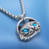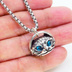 立体的でリアルな猫フェイスモチーフのペンダントネックレス ヘッドフォン ブルージルコン シルバー925PLTD チタン鋼