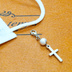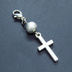 マスクチャーム アンティークシルバー ロザリオ(十字架)とメタルビーズのコンパクトなチャーム