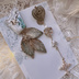 白夜の物語展の作品です。 イエスを助けたローズマリーの花物語。 割れた額面にローズマリーをイメージした葉を描きました。 さらに蝶は復活の象徴。 祈りが聞こえるようなそんな作品です。 白ベースなのでお洋服を選ばず着用いただけます。 片側長めの作品です。 ※イベント作品の為ピアス、イヤリングの変更指定ができかねます。 ご確認のうえご購入をお願いします。 __サイズ__ 縦約9㎝×横3㎝ 両方分の最大サイズで記載しております。 ___購入の際の注意____ ハンドメイドの作品です。 一部作品は樹脂粘土を使用しております。 ワックスで加工しておりますが水濡れにお気を付けください 一部レジンを使用しております。 金属を使用しているため金属アレルギーの方はご注意ください。