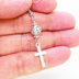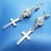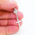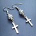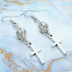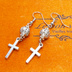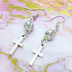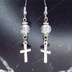 アンティークシルバー ロザリオ(十字架)と透かしメタルビーズを組み合わせたコンパクトなピアス サージカル変更可