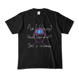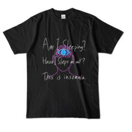 Am I sleeping? Have I slept at all? This is insomnia. 「私は眠っている?全く眠っていない?これが不眠症だ。」 チャック・パラニュークの名言。映画にもなった、ファイト・クラブの原作者です。 寝る時用のTシャツを作るつもりが、思ったより尖ったデザインになってしまいました。 私はこれではねんねの気分になれないので、外で着ようと思います。 ちょっと価格が高くなってしまいましたが…品質にこだわった結果ですm(_ _)m その代わり生地もしっかりしているので、長く着られるとは思います。 不眠症をこっそりアピールしたい方にも、布団入って5秒で寝れる不眠症とは無縁の方にもオススメ。 ※この商品はpixivFACTORYで作られた商品です。サンプル画像は完成イメージのため、実物と異なる場合があります。