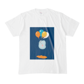 Tシャツ - XL - 白1周年ありがとう! 風船に乗ってぼくからみんなへプレゼントをお届けするTシャツだよ! この商品はpixivFACTORYで作られた商品です。サンプル画像は完成イメージのため、実物と異なる場合があります。