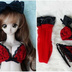 色、赤・黒 切り返し 素材、本体:ポリエステル混紡 / 留め具(かぎホック):金属類 大きさ、DDdy胸 専用 梱包・荷姿、B6判 ヘッダー付PP袋に一部を畳んで1着分を封入 内容物、ヘッドピース×1・ブラジャー×1・ショーツ×1・ハイストッキングソックス×1組2本合計5点 ・ヘッドピース・・・大ぶりなリボンにしてみました ・ブラジャー・・・後ろホック留め ・ショーツ・・・両脇リボンを紐に見立てたヒモパンツ ・ストッキング…ガーターベルトは用意できませんでしたm(_ _)m