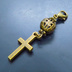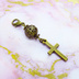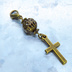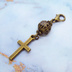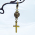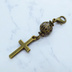 マスクチャーム アンティークゴールド ロザリオ(十字架)と透かし入りメタルビーズのコンパクトなチャーム