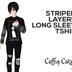 Custom Vroid item including texture. Grungy, goth aesthetic layered striped long sleeves under Coffin Cozy tshirt. Coffin Cozy Apparel are my own designs 🖤 (Installed as long coat as a top)