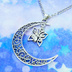 アンティークシルバー 透かし三日月と蝶(バタフライ)の大人可愛いネックレス ムーン 長さ調整可 ステンレス可