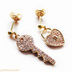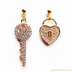 ジルコニアがついた鍵とハート型の南京錠の左右それぞれ違うモチーフのピアスです。 【サイズ】錠 : 約9×24mm / 南京錠 : 約11×14mm ◆ネジバネ式イヤリング、フープイヤリング、樹脂フックピアス、チタンフックピアス、チタンポストピアスへ無料で交換させていただきます。 ご希望の方はご注文後に「ネジバネ式イヤリング変更希望」「樹脂フックピアス変更希望」とメッセージでお伝えください。 ******************************************** 【購入の際の注意点】 ※全てを手作業で制作しておりますので作品ごとに色や形がわずかに異なる一点ものとしてご理解ください。 ※ご購入前に作品の「サイズ」や「素材」を十分にご確認頂きますようお願い致します。 ※画面上と実物では色が異なって見える場合があります。ご不明な点がありましたら、お問い合わせください。 ※落下や無理な力が加わりますと、破損の原因になりますのでご注意ください。 ※ご注文完了後、お客様都合(イメージと違う等)による交換・キャンセル・返品はお受け致しかねますことをご了承ください。 ※配送事故や配送中の故障などについては当方で責任を負いかねますことをご了承下さい。 ※お知らせいただいた宛先に不備があり戻ってきた場合、再送にかかる送料(\300)を追加で請求させていただきます。 登録住所をよくご確認の上ご注文ください。