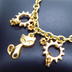 マットゴールド 猫と歯車を組み合わせたスチームパンク風ブレスレット