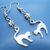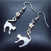 アンティークシルバー 跳ね猫と花のチャームを組み合わせたコンパクトなピアス サージカル可